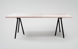 „A Trestle“ is a pair of trestles I designed for pur natur together with Oliver Fink. Metaphorically it refers to a pair of trees that grow side by side – so called brothers – and that support each other in order to withstand the loads of wind and weather throughout the year. It’s simple shape refers to traditional craftmenship from the Black Forest, yet adapts to the flexible needs of todays living. It’s sophisticated, graphic appearance, combined with the super-black stained silk-mat surface, intensifies the perception of wood by creating a sharp contrast between the trestles themselves and the table board. The latter always rests calmly due to the convex bearing surfaces of the trestles and thus builds a perfect base for all events that might come.